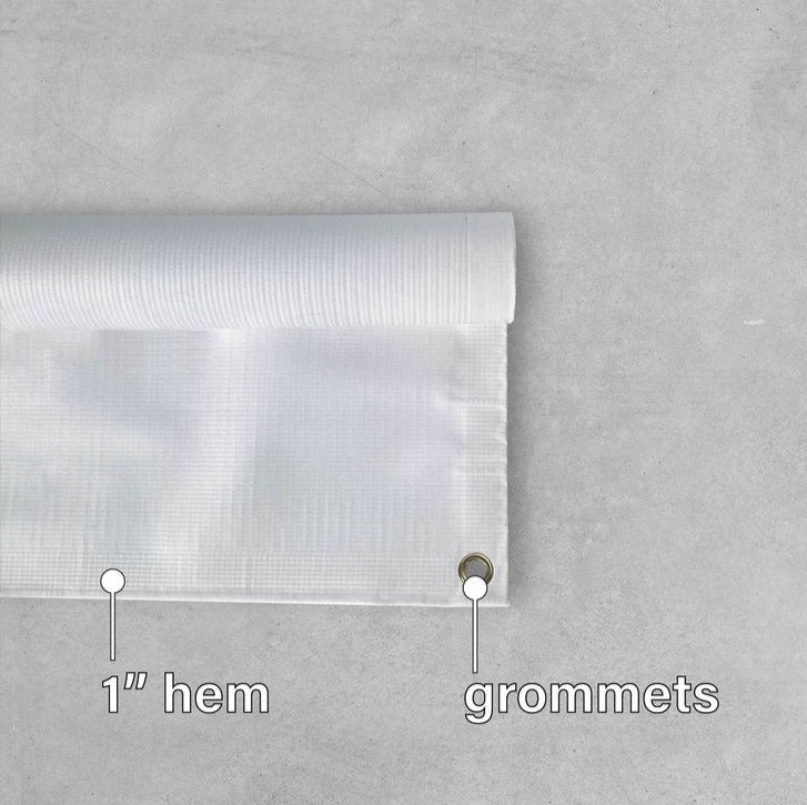 Your vinyl banner is made with high quality scrim vinyl banner material. Hanging Banner Signs have a hemmed edge to increase durability and preventing fraying. Grommets are added around the perimeter of your custom printed banner sign for reinforcement and hanging. Use the grommets for fastening and hanging to prevent damaging your digital printed banner.