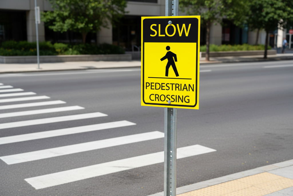 Inform drivers to reduce speed for pedestrians crossings