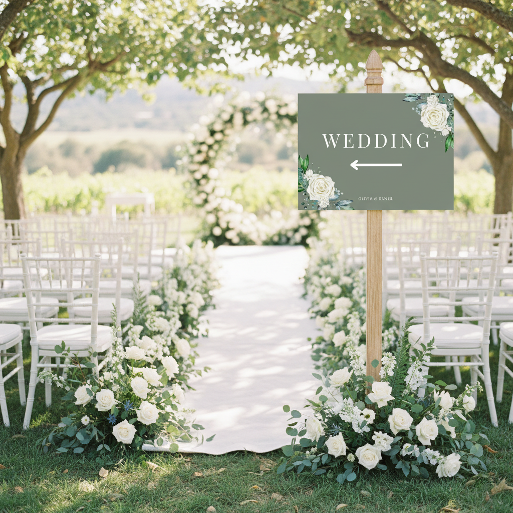 Direct your wedding guests to your venue with a design ready wedding directional sign, all we need is the couple’s name. Quick and Easy.